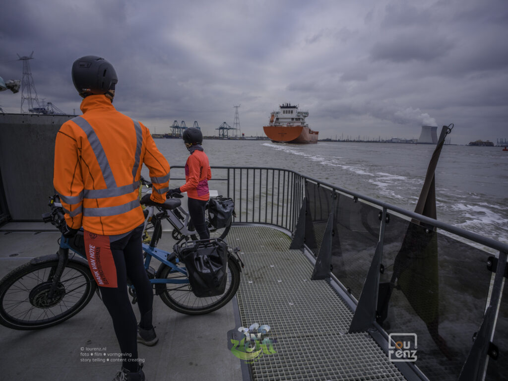 Een groot deel van de middag fiets ik langs de Westerschelde en door industriegebied met als grootste blikvanger de kerncentrales van Doel. Door het weidse landschap zie ik deze uren achtereen. Als ik uiteindelijk met de watertaxi over de Westerschelde wordt gezet ben ik al weer enkele grote sluizen gepasseerd. Indrukwekkende bouwwerken, waarin enorme schepen wachten tot ze verder kunnen.