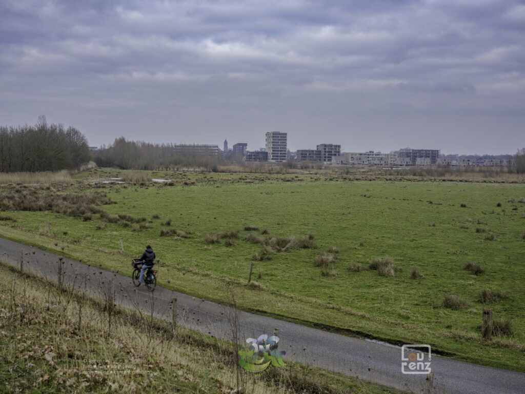 Vanuit Breda fiets ik eerst door bossen. Het is een gevarieerde route langs weides omzoomd door bomen. Regelmatig zie ik kleinere waterwerken om de waterstand te regelen. Vlak voor Bergen op Zoom fiets ik over en om de Brabantse wal, een gebied dat duidelijk hoger ligt dan de omgeving. Zo kom ik op de Kraaijenberg, de steilrand is hier goed zichtbaar. Onderaan ligt de Agustapolder en Hildernisse. Hildernisse lag ooit ver van de Schelde, omgeven door een landschap van turf, Wilde Moer geheten. De Sint-Felixvloed van 1530 verzwolg dit landschap en de Allerheiligenvloed van 1570 het dorp. Zo zal ik de komende tijd vaker langs gebieden komen die verdronken zijn.