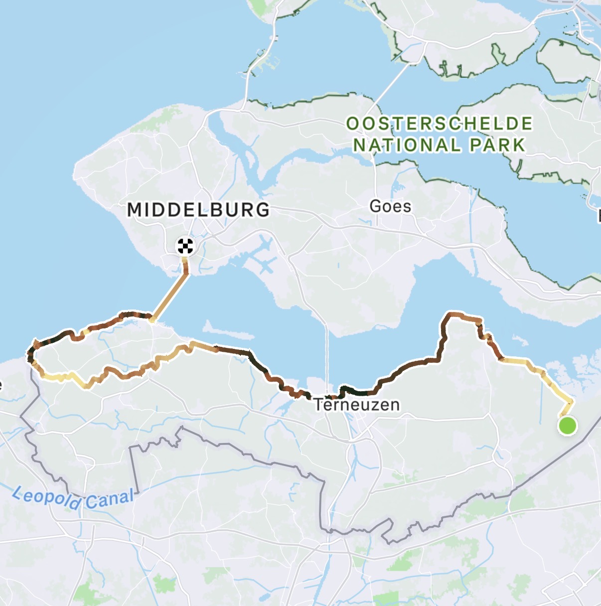 Route Nieuw Namen – Emmadorp  – Walsoorden – Terneuzen – Biervliet – Zuidzande – Cadzand – Breskens – Oost Souburg