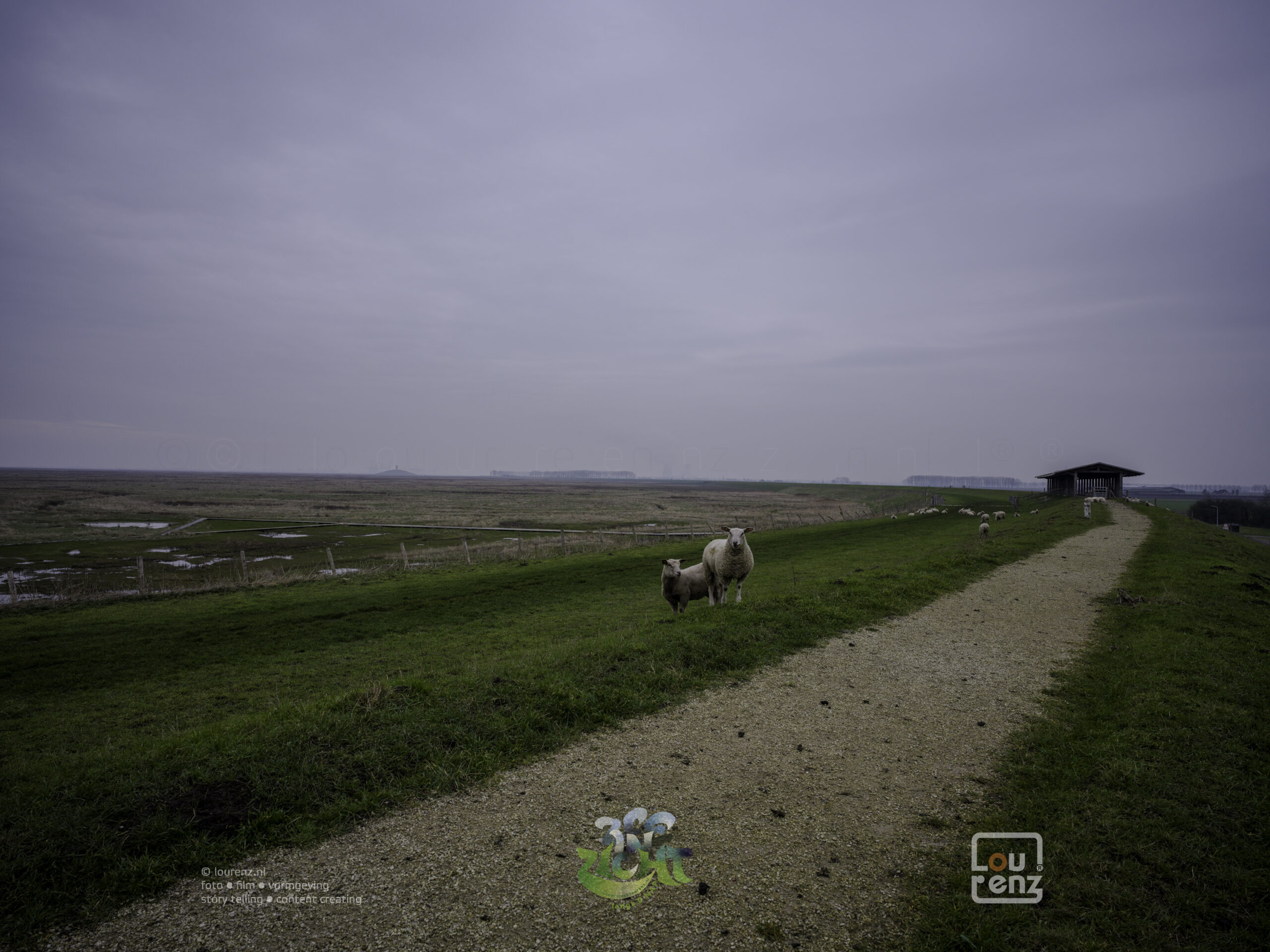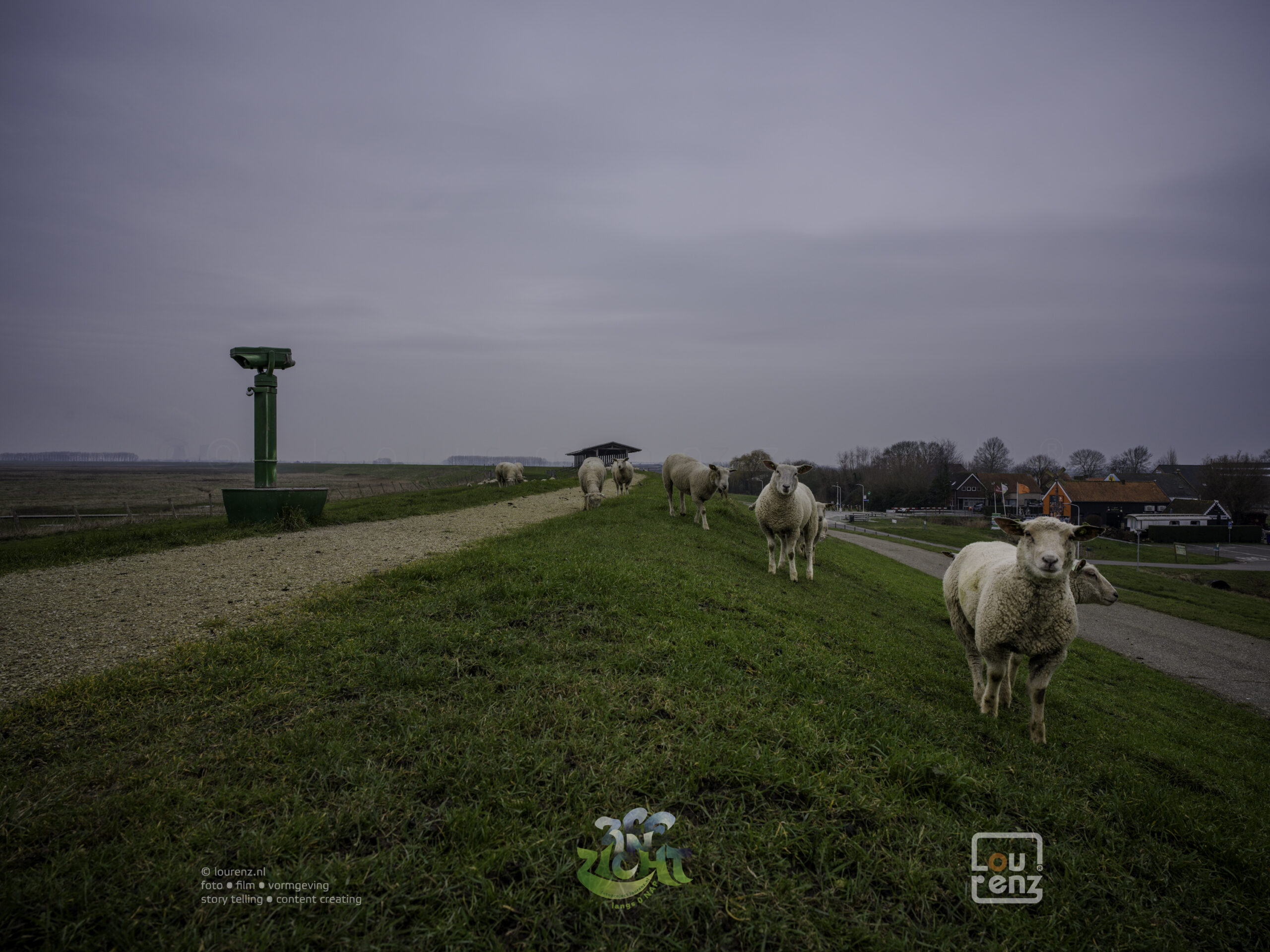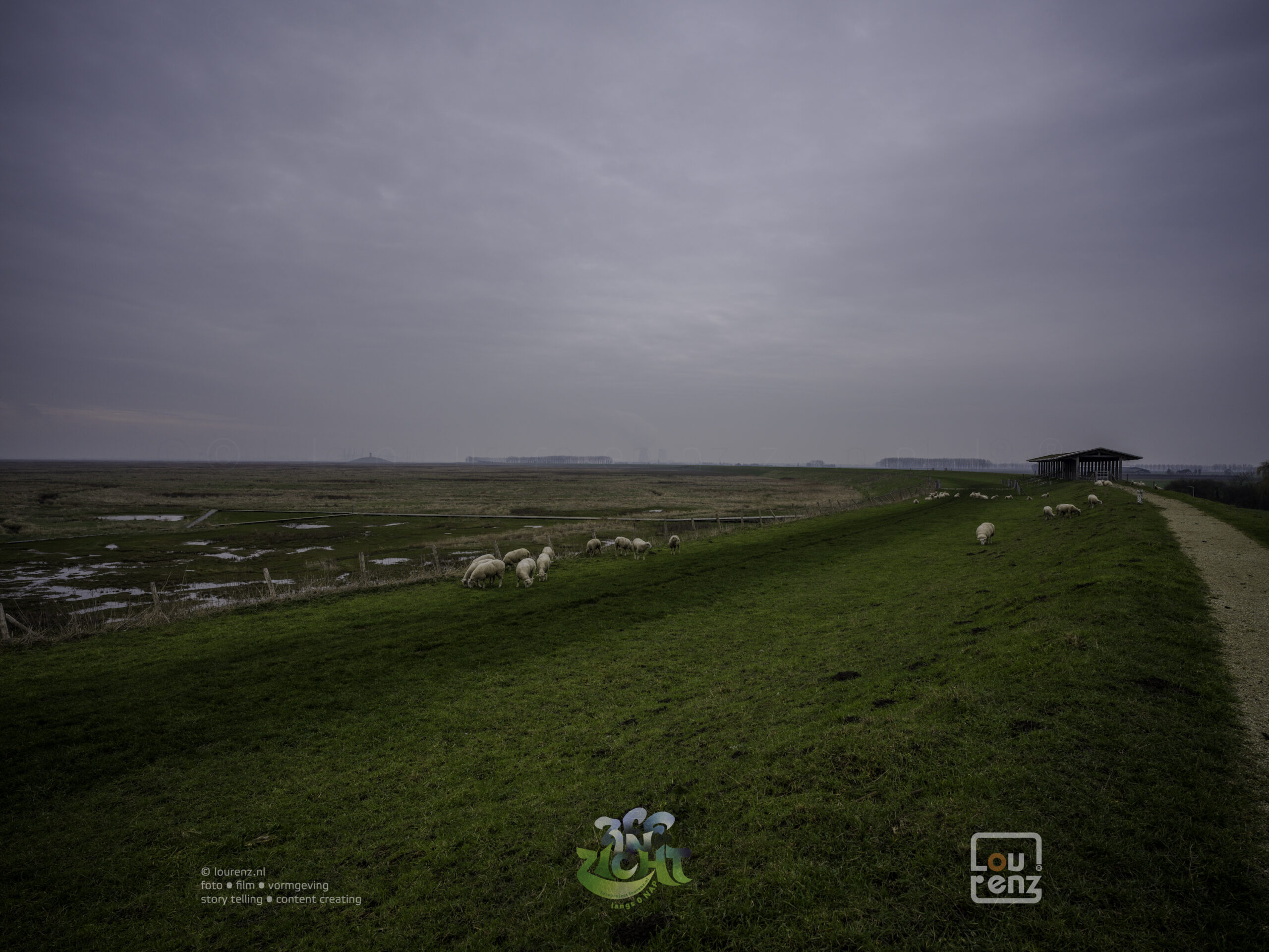 Deels achter de dijk, maar liefst op de dijk of langs de Schelde ga ik naar het Westen. Ik kom langs kleine plaatsjes als Paal en Perkpolder. Het fotograferen schiet er een beetje bij in door de regen en de kou. Inmiddels staat er op mijn scherm dat het 0,1°C is. Om te fotograferen moet een natte handschoen uit. Dat is al lastig, maar die weer aandoen kost wel minuutje of zo. Dan maar een paar foto’s met de iPhone in een waterdichte hoes. Ook geen succes, knopjes en touchscreen bedienen met dikke, natte handschoenen. Af en toe lukt het me een foto te maken als het iets minder hard regent.